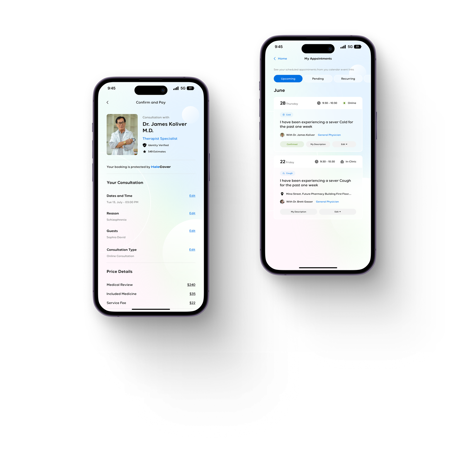 Healthcare is still fragmented. Patients bounce between apps, portals, and phone calls, while providers lose time to admin-heavy workflows. I led product design for Halelink, a public health platform in development, to unify symptom triage, booking, and care context into one guided flow that feels calm, clear, and actionable.